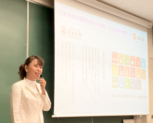 日本大学は社長の出身ランキング12年連続1位の大学です。日本の将来を担う大学生に、少子高齢化、成熟社会、AIやDXで複雑な現代社会で活躍するため、「主体性」「独自性」「発信力」を持つことの重要さと、時代に即した「早く・効率的で・理解しやすい」伝達術である「プレインランゲージ」をお伝えしました。